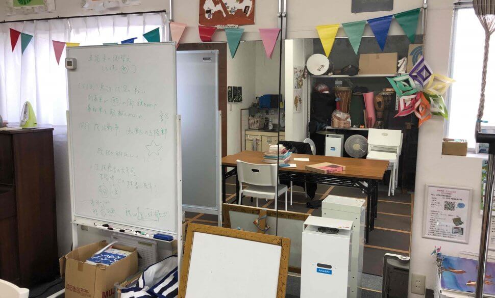 レッスンに使いやすいホワイトボードやアップライトピアノを完備しています。その他、レンタルパーカッションなども貸し出しがあります。ウイルスに効果的な除菌装置も備わっているので、お子様でも安心してご利用頂けます。